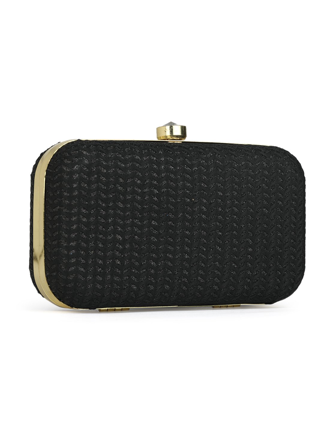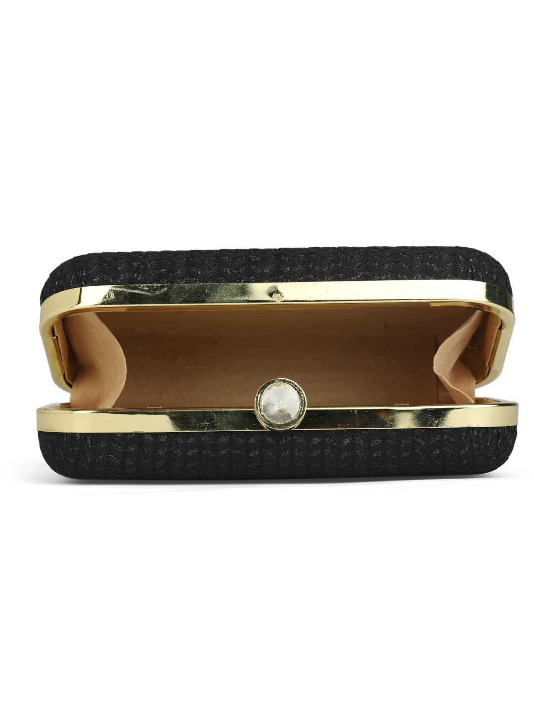 Blackembroidered box clutches Has shoulder strap, 1 main compartment with twist closure