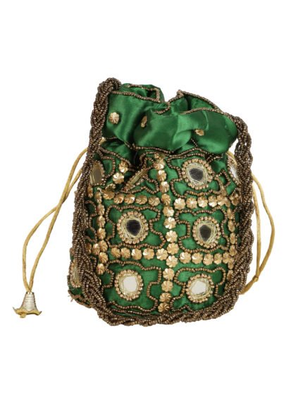 Combo – Designer Embroidered Potli Bag – Golden & Green