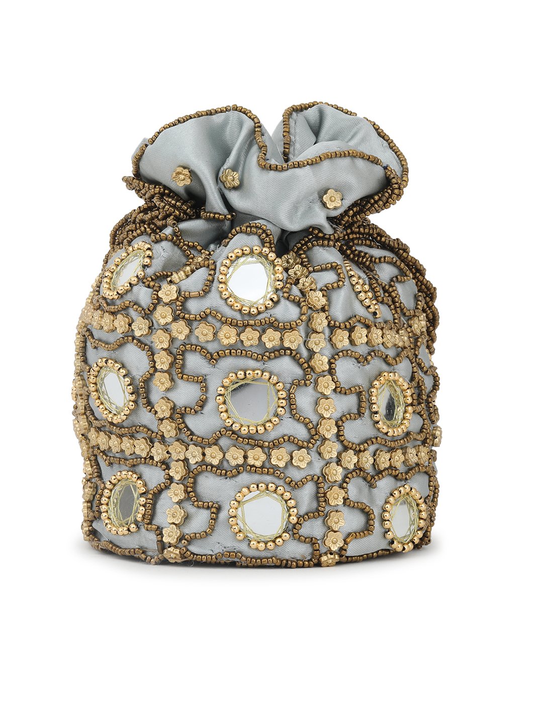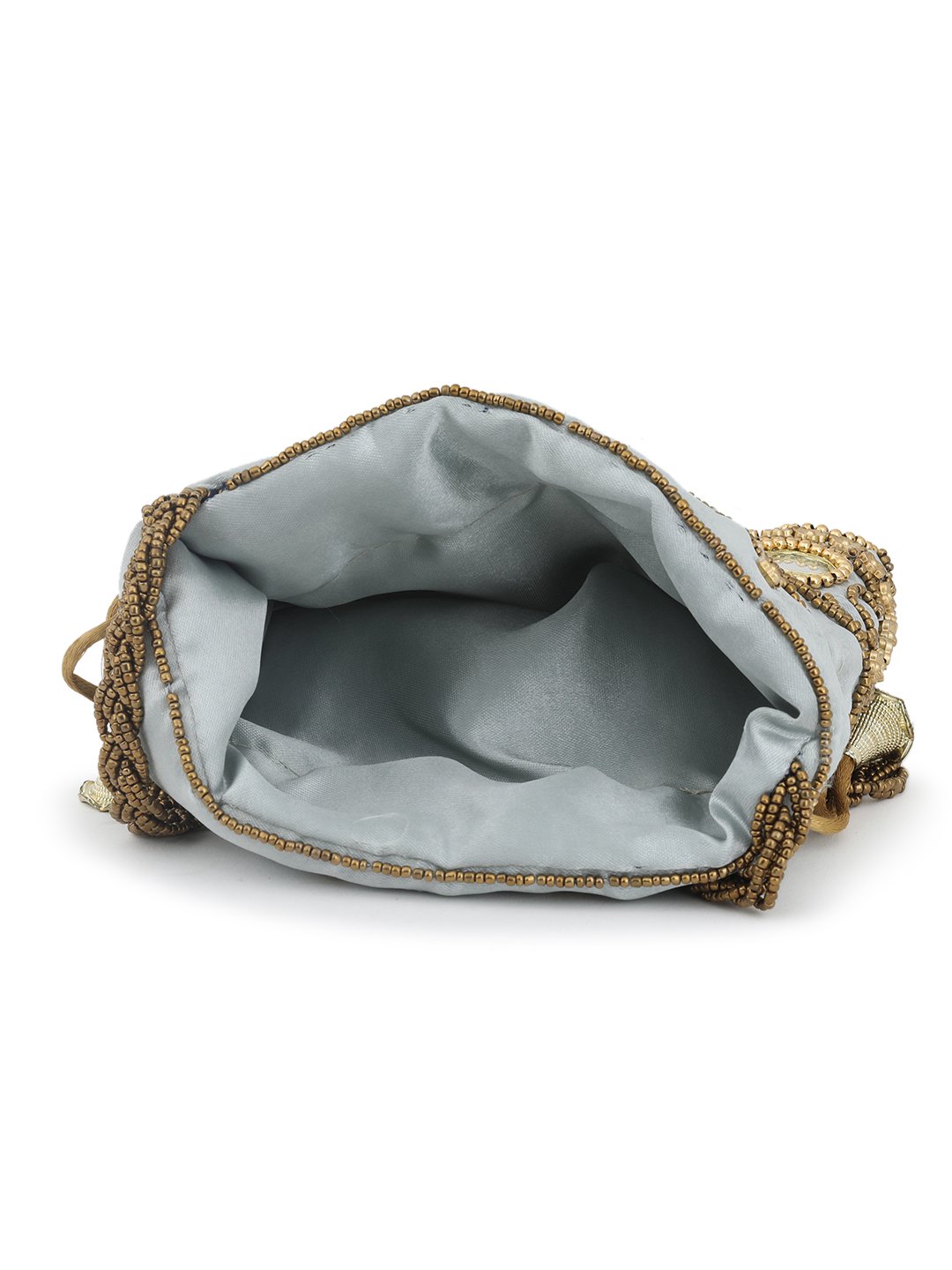Gold-toned embellished potli clutches Has wrist loop 1 main compartment with drawstring closure