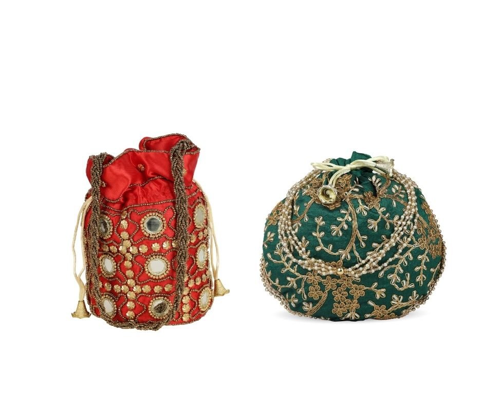 Combo – Designer Embroidered Potli Bag – Red & Green