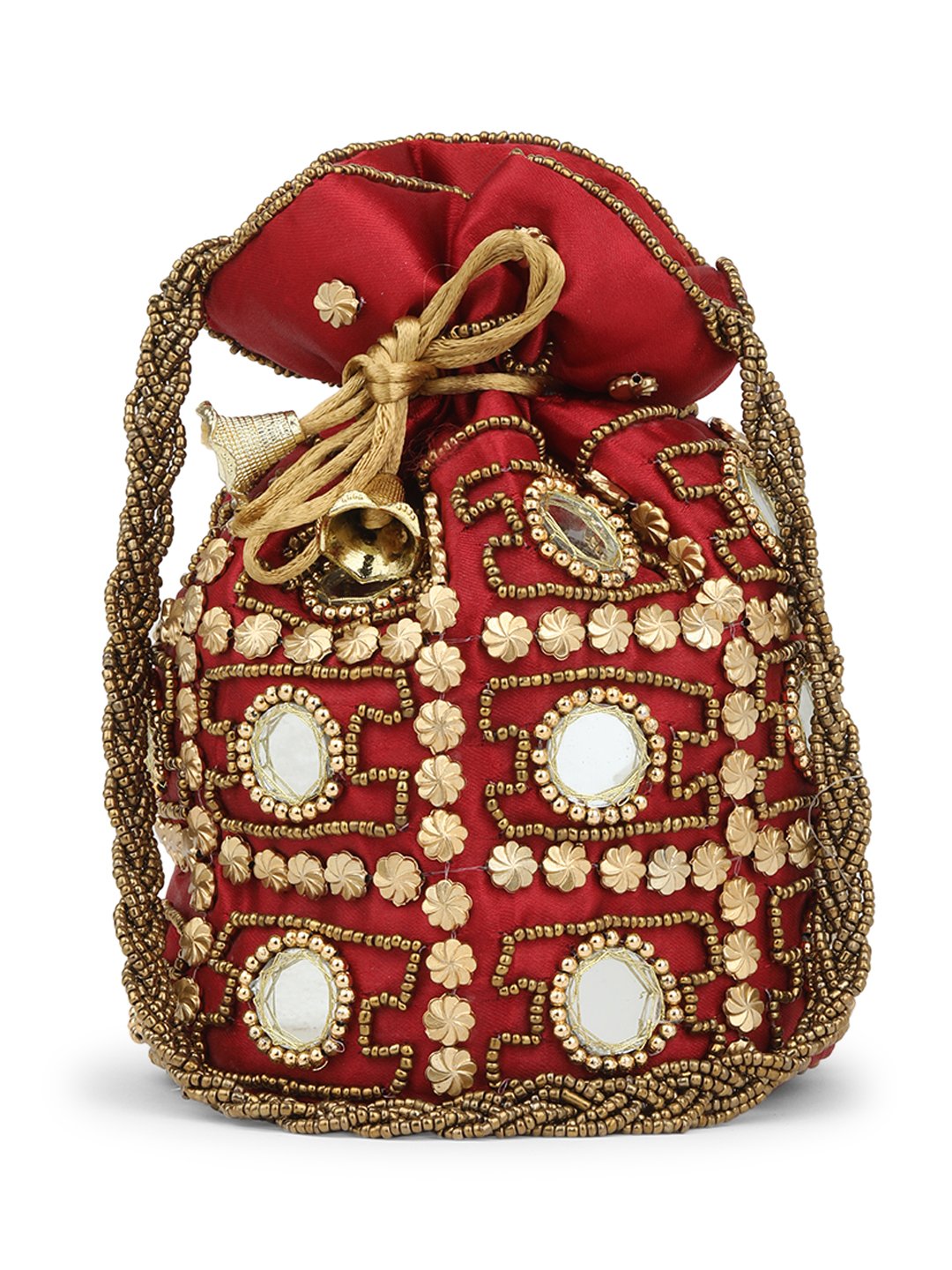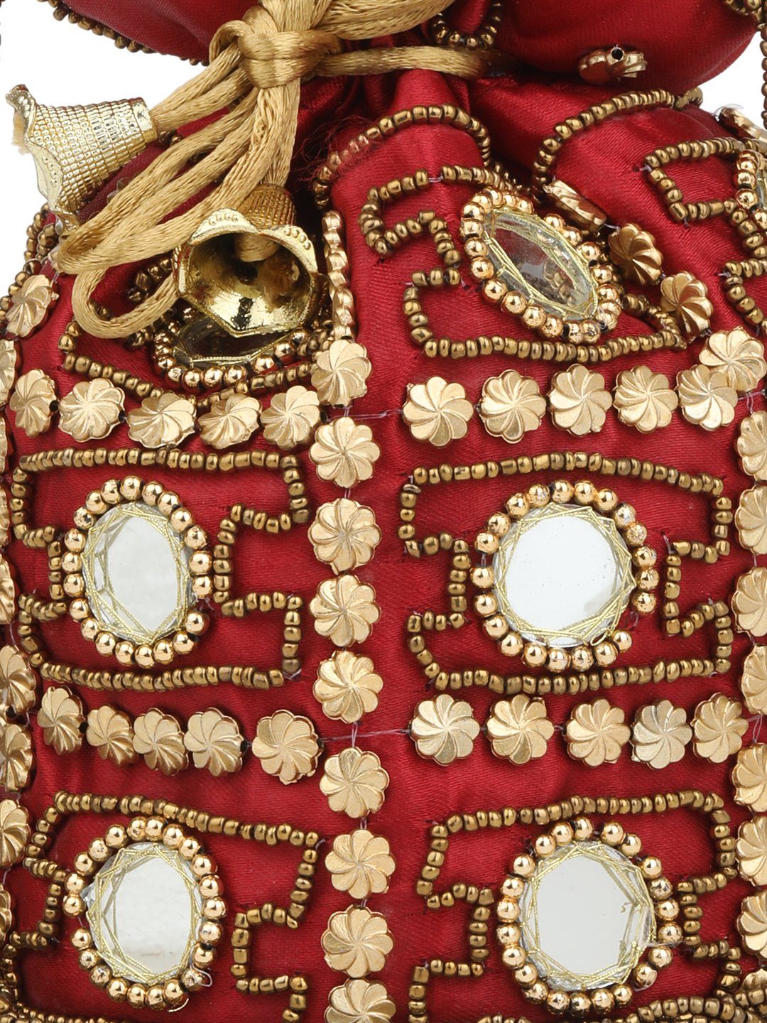 Maroon embellished potli Has wrist loop 1 main compartment with drawstring closure Size & Fit Size : 9 x 9