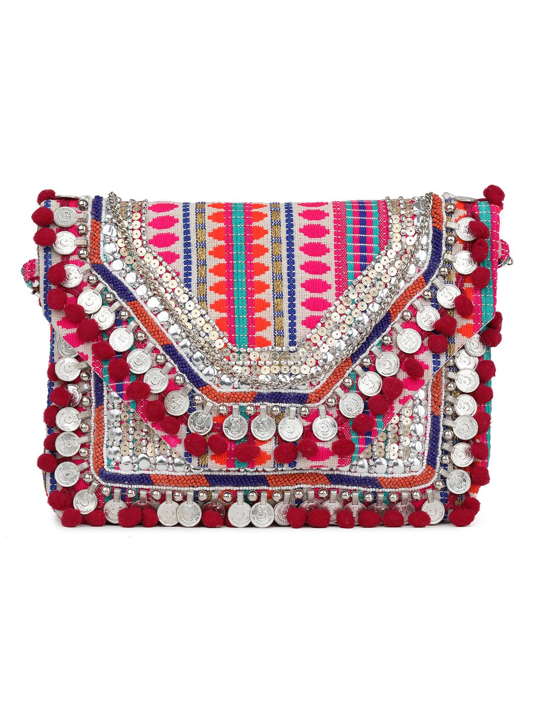 Combo Of Boho Bag And Orange & Gold Embroidered Box Clutches For Girls and womens