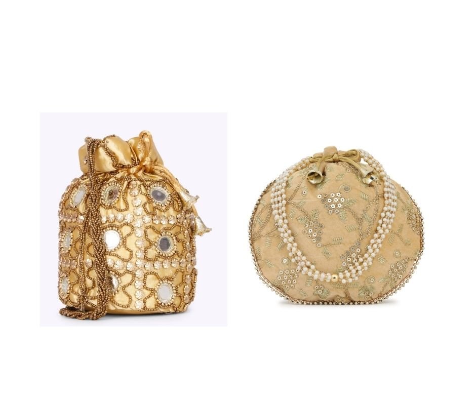 Combo of Golden & Beige Designer Embroidered Potli Bag