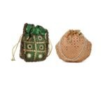 Combo – Designer Embroidered Potli Bag – Golden & Pink
