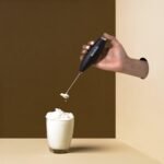 Handheld Milk Frother – Battery-Operated Stainless Steel Mixer with Stand – Perfect for Milk, Coffee, Lattes, Cappuccino, Frappe, Matcha, Hot Chocolate, Egg Beaters – 1-Year Warranty, Black