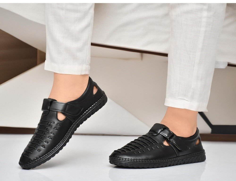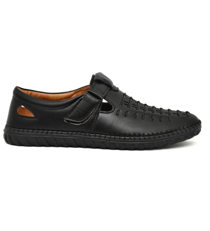 Men’s Faux Leather Sandal, ? Color: Black, ? Material: Faux Leather, ? : 6, ? Closure Type: Slip-On, ? Heel Type: Flat, ? Type: Sandal, ? Disclaimer: The color of actual product may vary slightly from the images provided due to photographic lighting conditions and difference in screen resolutions.