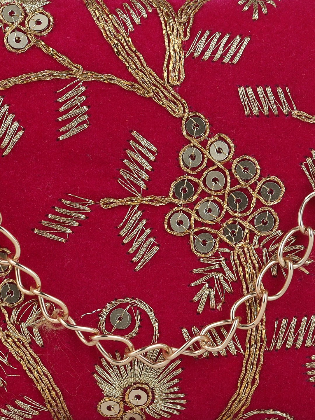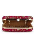 Pink Embroidered Box clutches, Has gold chain shoulder strap, 1 main compartment with twist closure