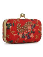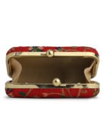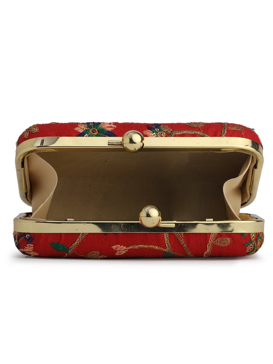 Red & Gold Embroidered Box clutches, Has gold chain shoulder strap, 1 main compartment with twist closure