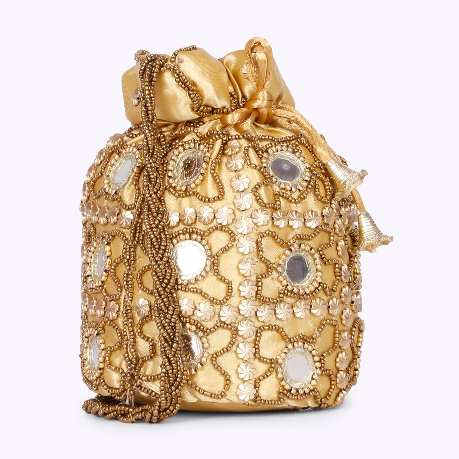 Gold-toned embellished potli clutches Has wrist loop 1 main compartment with drawstring closure