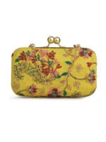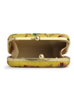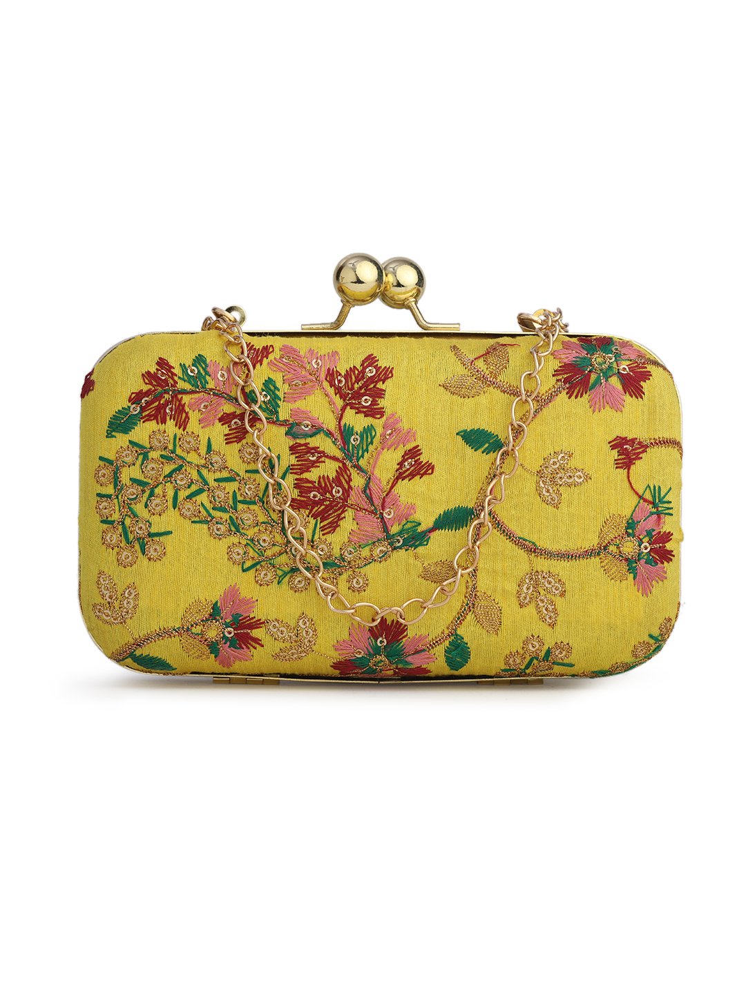 Yellow & Pink Embroidered Box clutches, Has gold chain shoulder strap, 1 main compartment with twist closure
